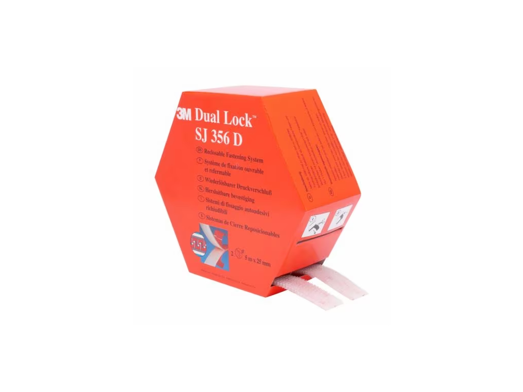 Der 3M Dual Lock SJ356D ist ein wiederlösbarer Druckverschluss mit pilzförmigen Köpfen und druckempfindlichem Acrylklebstoff. Er sorgt für stabile, zugleich lösbare Verbindungen auf Metall, Glas und Kunststoffen mit hoher Oberflächenenergie – geeignet für Innen- und Außenanwendungen, beständig gegen Feuchtigkeit und UV und mit langanhaltender Haltekraft auch bei häufigem Öffnen und Schließen.