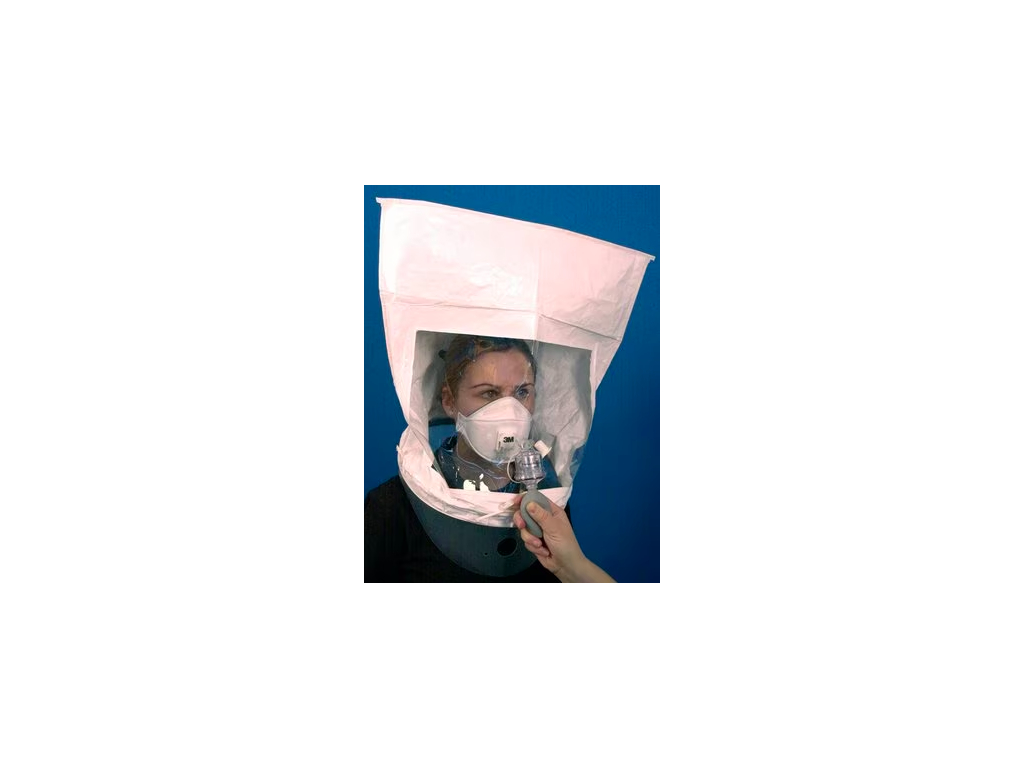 Maske korrekt aufsetzen, Haube positionieren und den Fit-Test gemäß Anleitung durchführen.