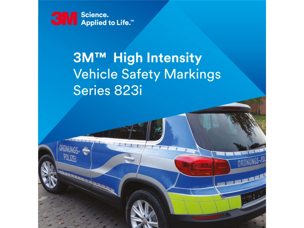Die 3M™ Kfz-Warnmarkierung 823i-10 ist eine stoßfeste, mikroprismatische Reflexfolie für die gut sichtbare Markierung von Sonder- und Einsatzfahrzeugen. Der dünne, flexible Einlagenaufbau passt sich flachen bis mäßig gekrümmten Oberflächen an. Ein druckempfindlicher, repositionierbarer Klebstoff mit Entlüftungskanälen (3M™ Controltac™) erleichtert die blasenarme Applikation; die Folie ist unter Hitze wieder ablösbar und bietet Außenhaltbarkeit für den vorgesehenen Einsatz. Erhältlich als einfarbige Variante oder mit rot/weißen Chevron-Drucken.