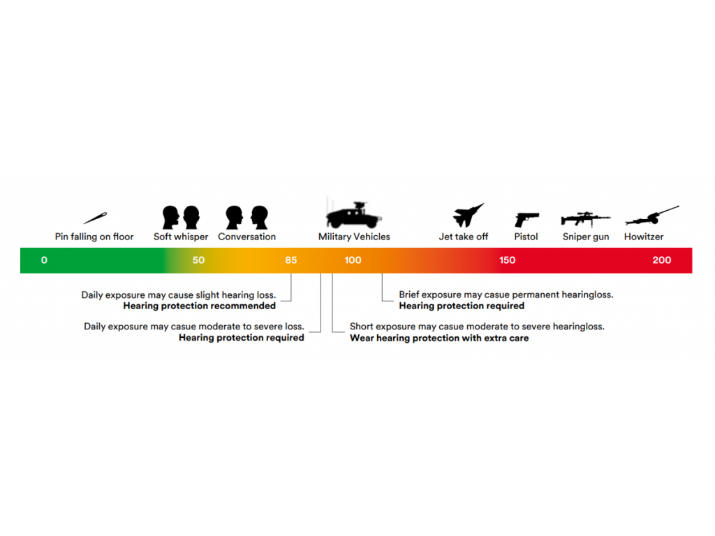 - Speziell für militärisches Personal entwickeltes Headset, reduziert die Exposition gegenüber gefährlich hohen Geräuschpegeln von bis zu 28 dB