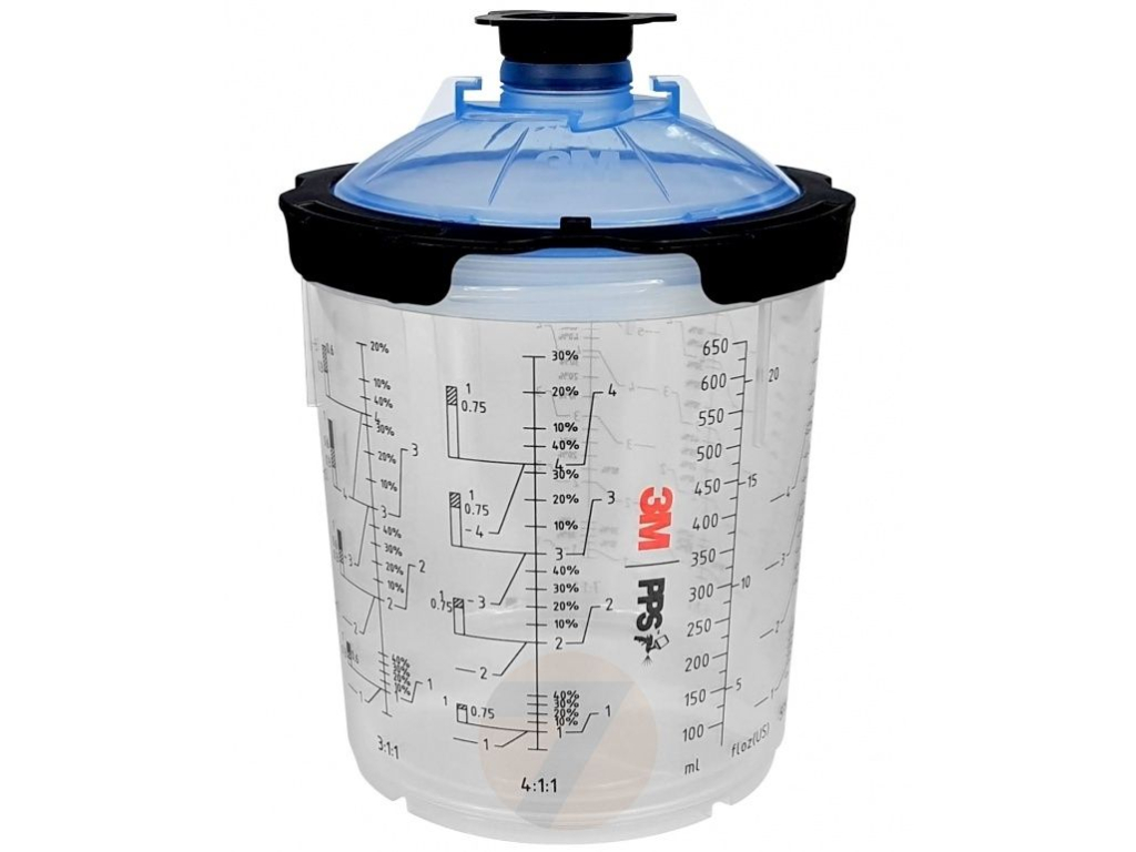Das 3M PPS 2.0 Set ist die Einweg-Sprühbecher-Komplettlösung zum Anmischen/Abmessen, Filtern und Aufsprühen von Lacken. Integrierte Verriegelungsmanschetten an den Deckeln helfen, Farbansammlungen und Verunreinigungen zu vermeiden. Der wiederverwendbare Hartplastik-Außenbecher mit klaren Sichtfenstern erleichtert das Wiederbefüllen, während Deckel mit Filter in voller Deckelbreite für gleichmäßigen Materialfluss sorgen – auch bei 360° Sprührotation. Das Set ist systemkompatibel innerhalb der 3M PPS 2.0 Serie.