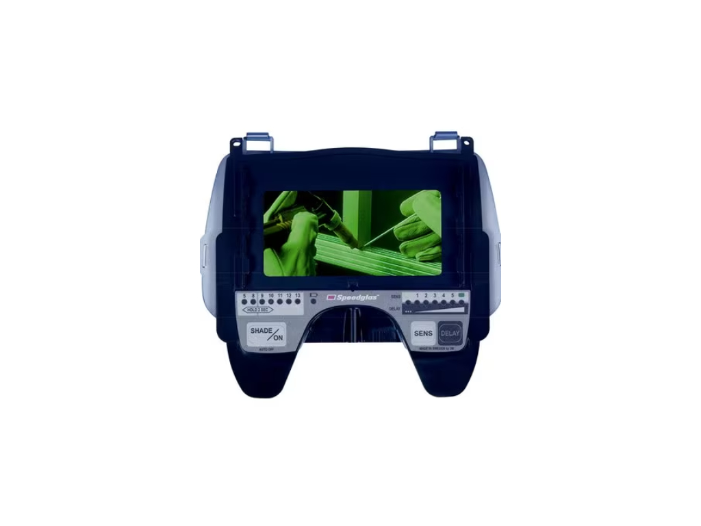 3M™ Speedglas™ Schweißerhaube 9100 mit seitlichen Belüftungsöffnungen. Inklusive 3M™ Speedglas™ 9100V Schweißpatrone: variable dunkle Tönung 5, 8, 9-13 für die meisten Arten des Lichtbogenschweißens.
