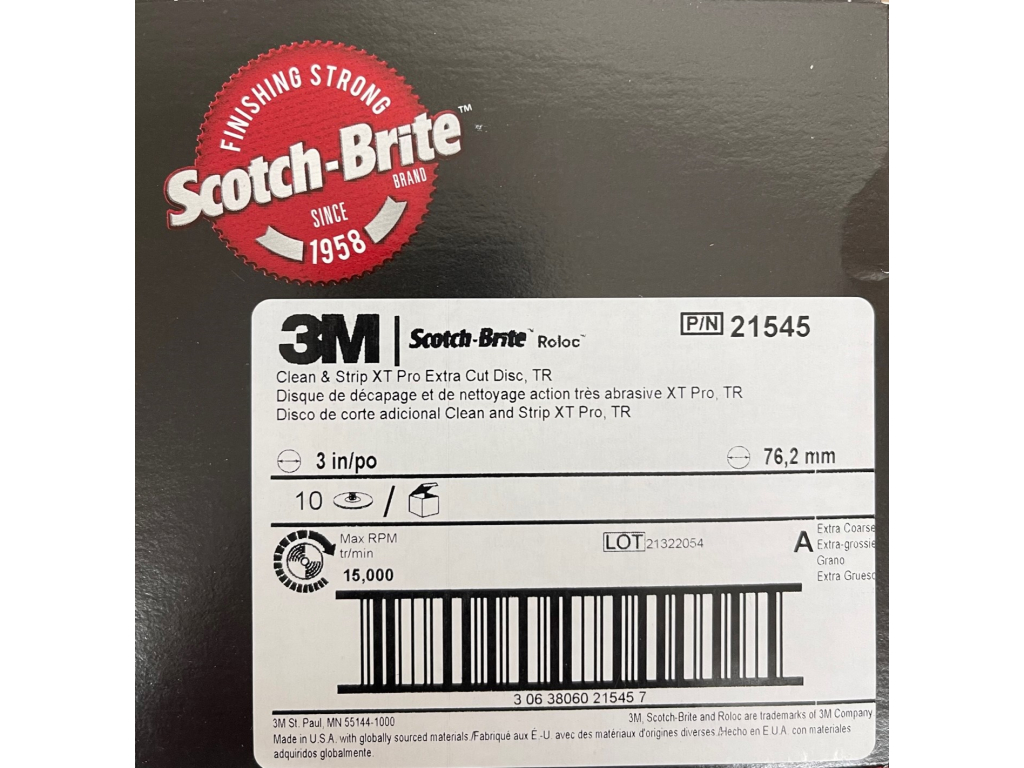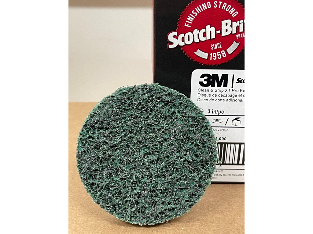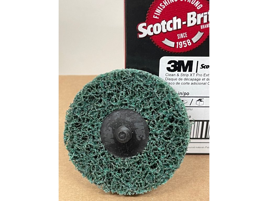 Die Scotch-Brite™ Roloc™ Grobreinigungsscheibe XT Pro Extra Cut verfügt über ein Schleifmineral aus Aluminiumoxid, das in eine offene Nylonkonstruktion integriert ist. Unsere Scheiben sind so konzipiert, dass sie harte Beschichtungen wie starken Rost, dickschtichtigen Lack und Korrosion entfernen und gleichzeitig das darunterliegende blanke Metall verblenden und veredeln.